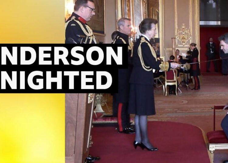 Watch as James Anderson, England’s all-time main Take a look at wicket-taker, receives a knighthood from the Princess Royal at Windsor Citadel.