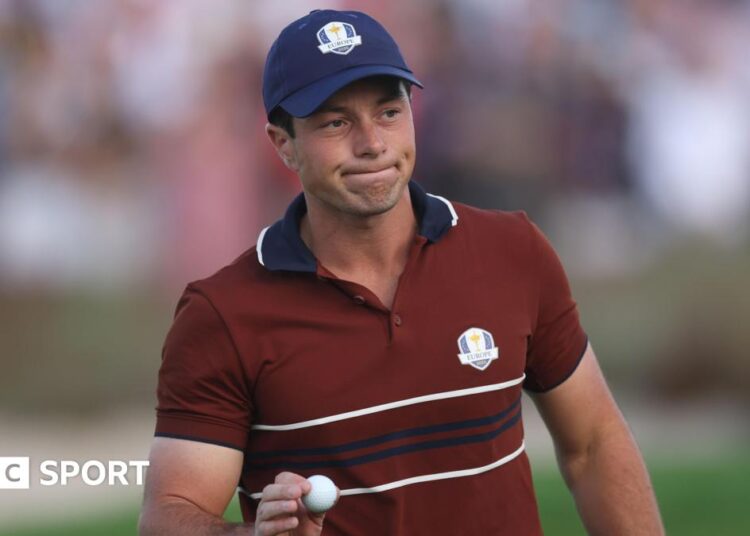 Hovland’s concern flared up following his Saturday morning foursomes victory alongside Robert MacIntyre towards Scottie Scheffler and Russell Henley.