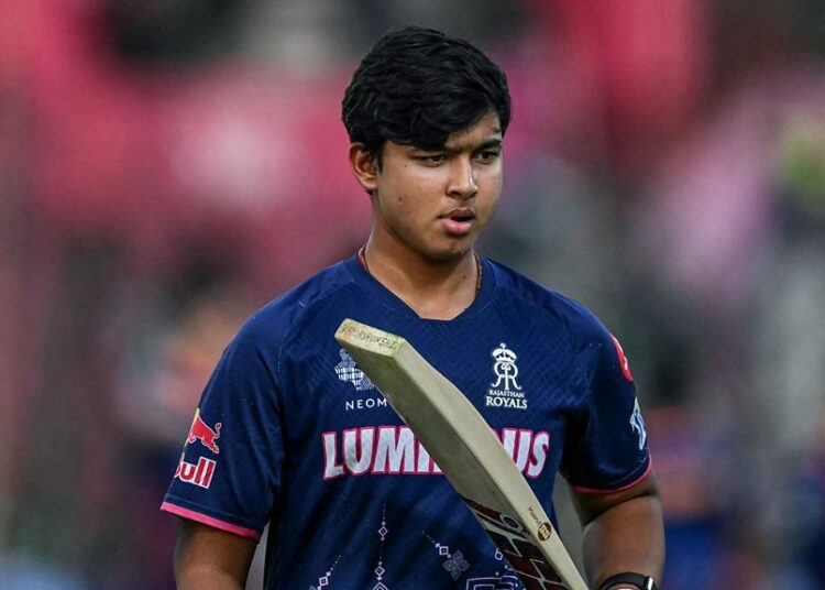 Photograph: Rajasthan Royals’ Vaibhav Suryavanshi warms up earlier than the beginning of the Indian Premier League (IPL) T20 cricket match between Rajasthan Royals and Mumbai Indians on the Sawai Mansingh Stadium in Jaipur on Might 1, 2025. (Credit score: AFP through Getty Photographs)
